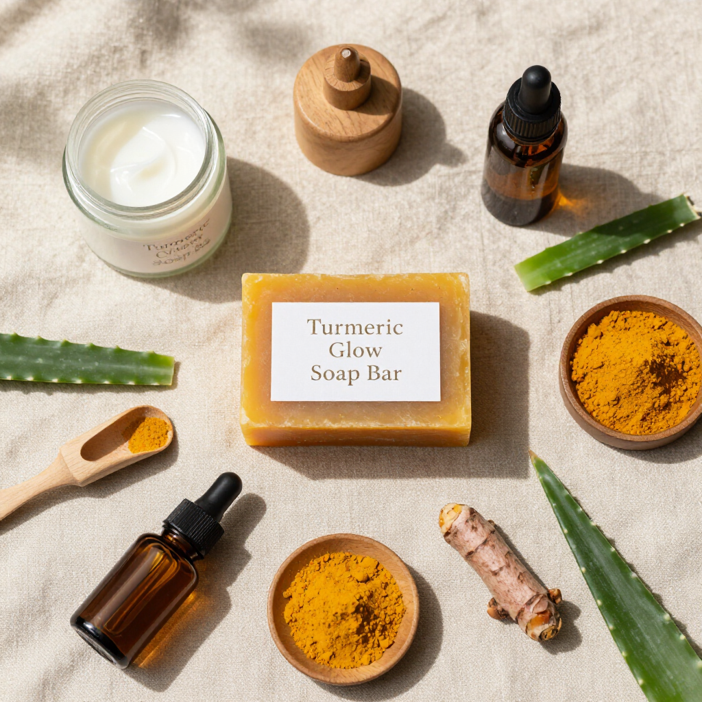 Our Turmeric Glow Soap Bar is crafted with pure Turmeric, known for its brightening properties, along with other nourishing botanical ingredients that promote healthy, radiant skin.